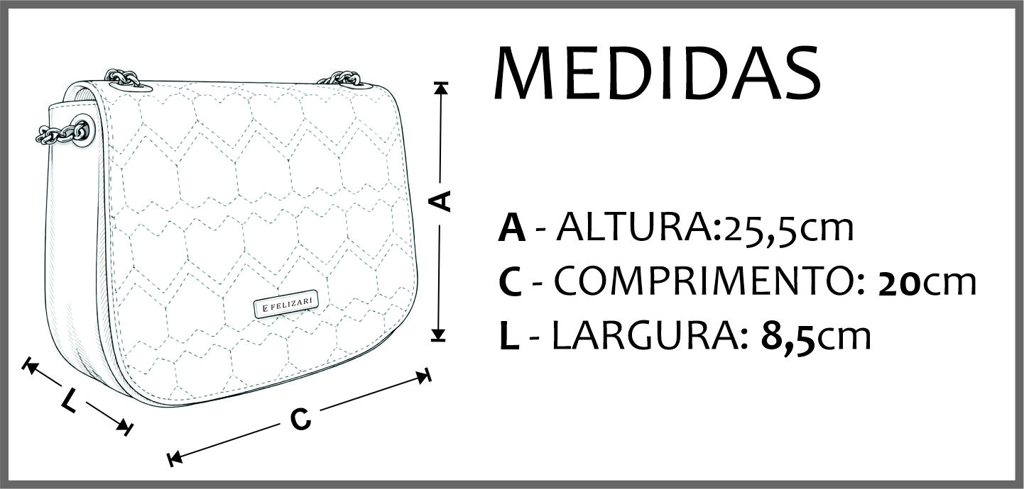 Seu design estruturado aliado ao toque macio do matelassê garante charme, praticidade e versatilidade para acompanhar sua rotina com estilo. Um modelo pensado para mulheres que valorizam exclusividade, presença e sofisticação em cada detalhe.